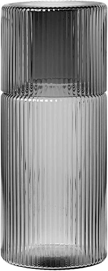 Sørg for at få nok vand hele dagen med dette smart sæt bestående af en lille karaffel og et glas, som også kan bruges som låg til karaflen. Sættet har dele seriens særlige karakteristika med sit let riflede og mundblæste glas i en smuk røgfarvet nuance. D